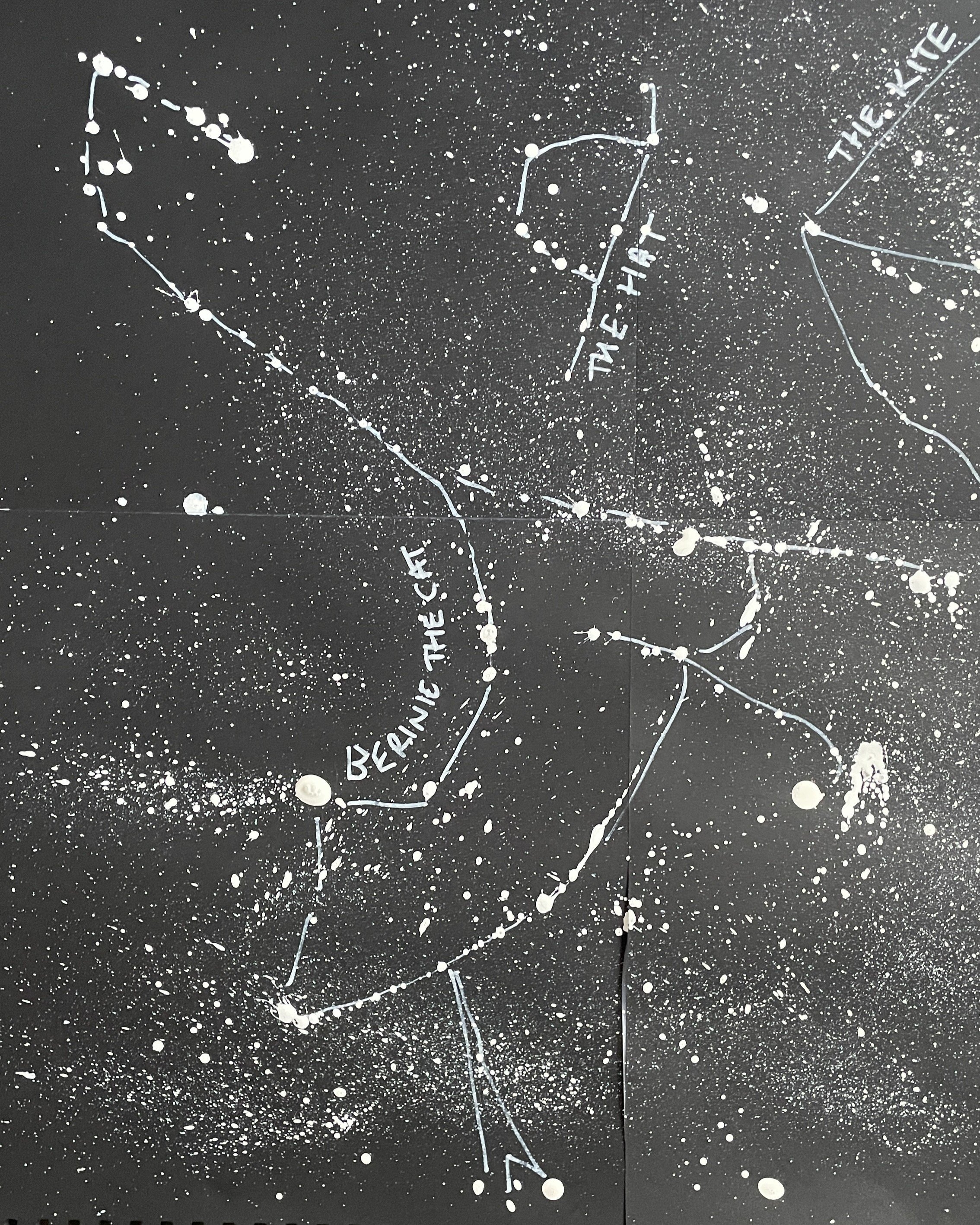 Method: Splatter ink, let dry, look for shapes, connect stars with pen, and name your constellation.