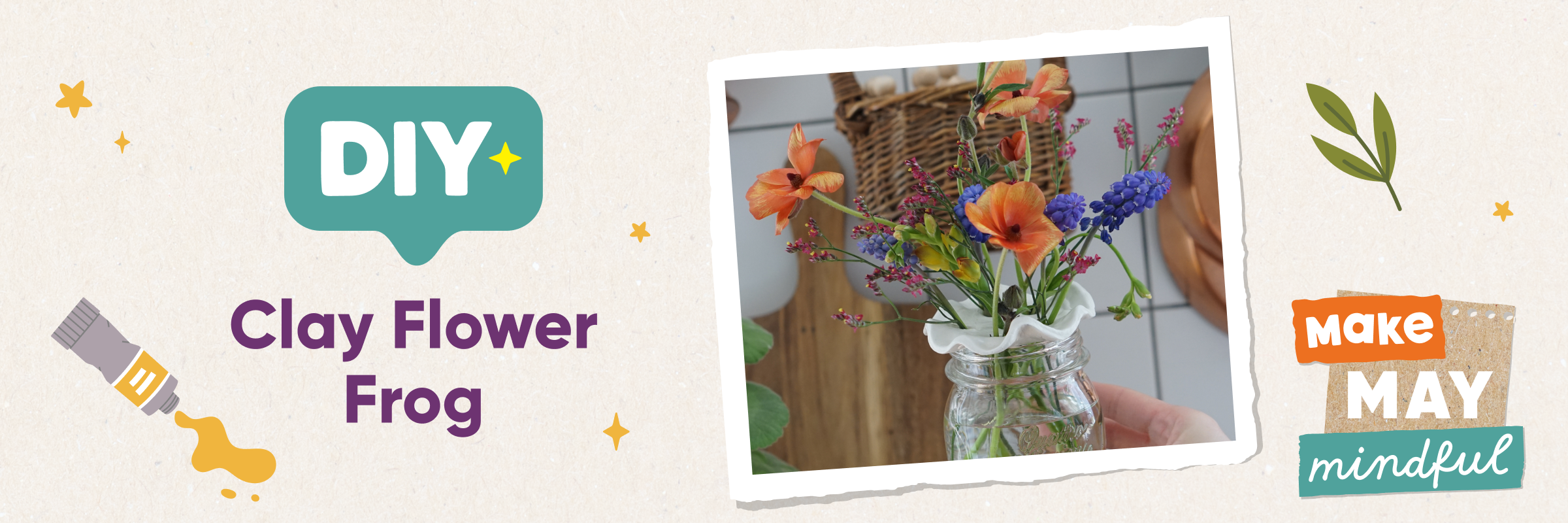 There’s something wonderfully grounding about sinking your hands into clay and shaping something small, sweet, and surprisingly useful. This little diy clay flower frog is a gentle make for slow days — a tiny helper that sits on your vase and keeps your blooms standing tall. It’s simple, soothing, and delightfully old‑fashioned in the best way. A perfect Make May Mindful project for anyone craving a screen‑free moment with a touch of whimsy.