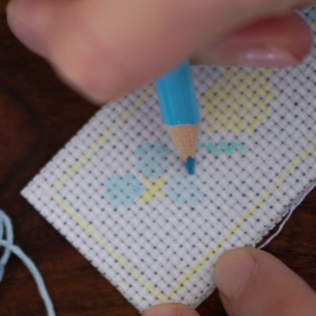 On your front piece of fabric, lightly sketch your design. You can use coloured pencils to map this out, which makes stitching feel a little more relaxed, no need to count every stitch as you go.