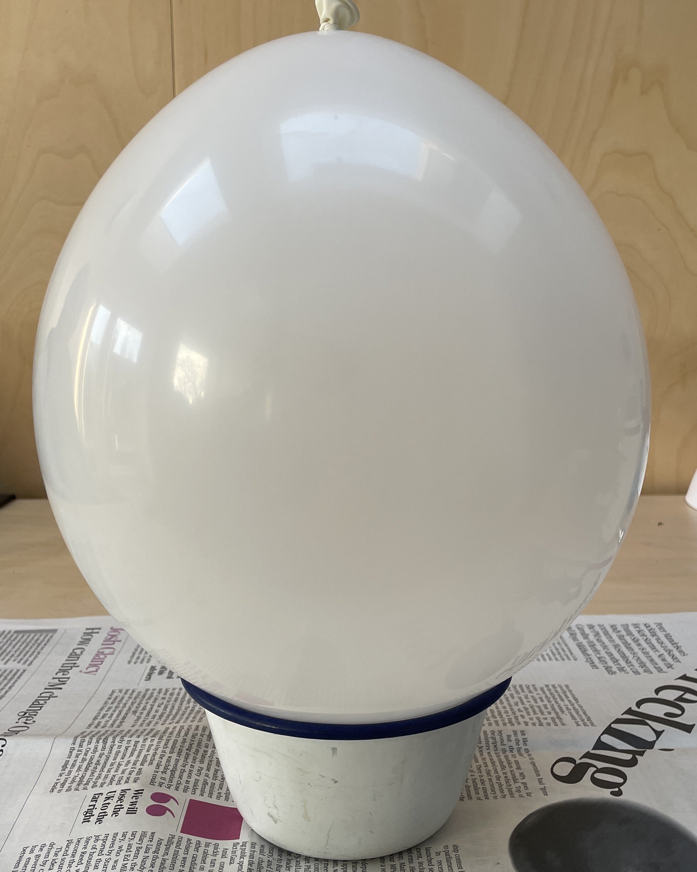 1. Prepare the balloon. Inflate a balloon and place it in a cup or cardboard ring so it doesn’t roll around.