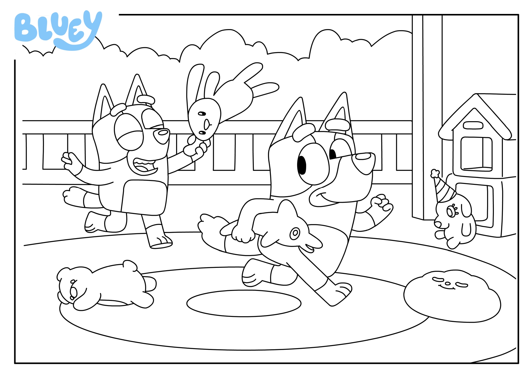 Celebrate everyday adventures with this cheerful Bluey colouring page! Featuring Bluey and Bingo playing outside, this printable is perfect for sparking creativity and capturing the joy of imaginative play. Whether it’s sunshine, games, or giggles, kids can colour their favourite sisters enjoying playtime in the great outdoors.