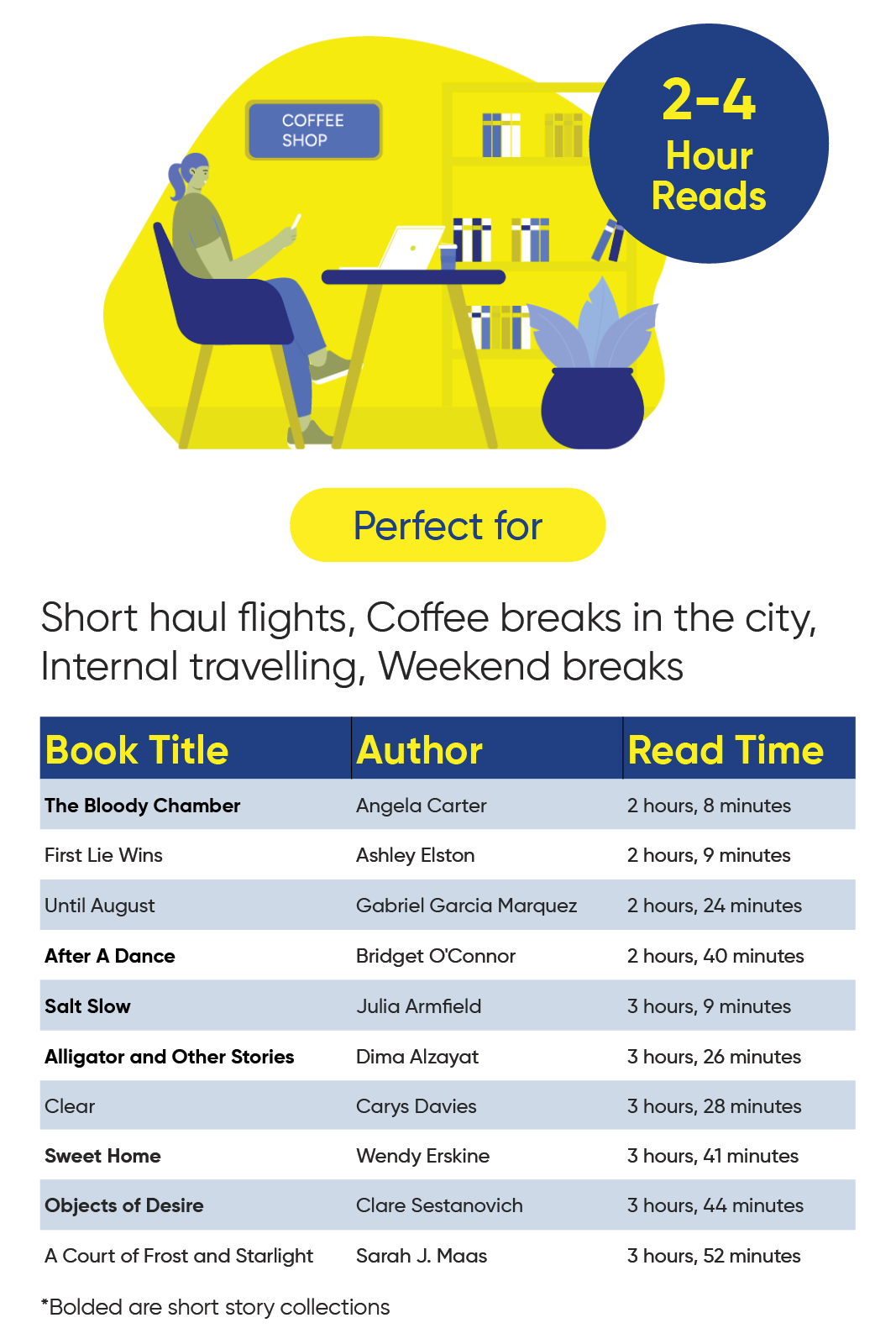 Short stories or smaller novels can be an ideal option for smaller breaks or travelling from destination to destination, immersing yourself in the narrative for just a short while before hopping off and beginning your own adventure.