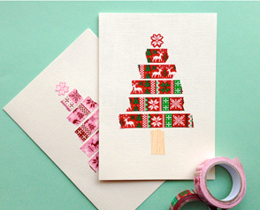If ever there was a competition to find the easiest homemade Christmas card on the planet, this Decorative tape card would be in with a shot at winning it. Just because it’s easy doesn’t mean it doesn’t look great either. What this card lacks in complexity, it makes up for in cuteness.
