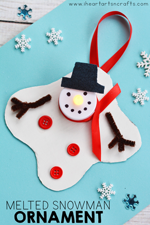 Read the full tutorial here: https://www.iheartartsncrafts.com/melted-snowman-tea-light-ornament/