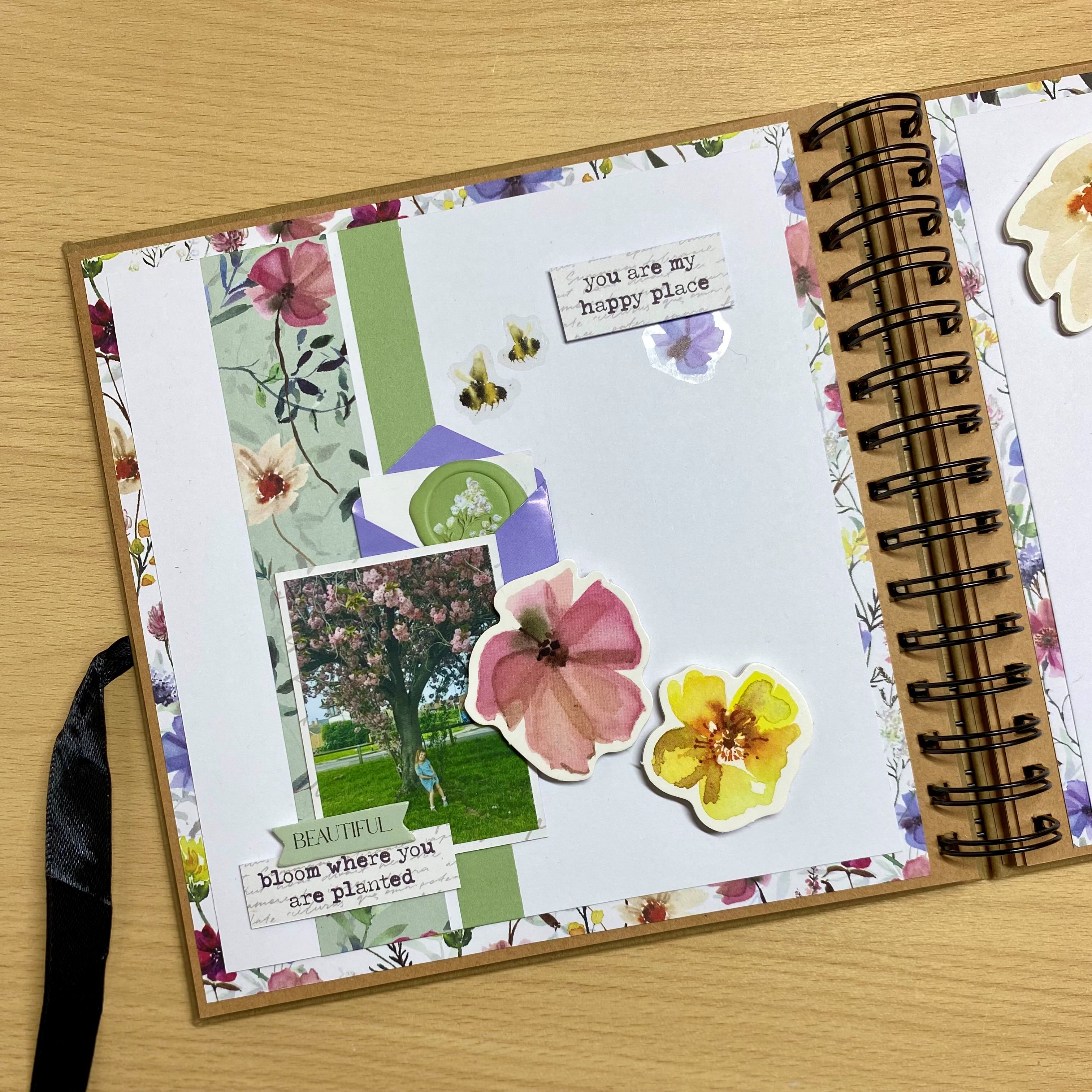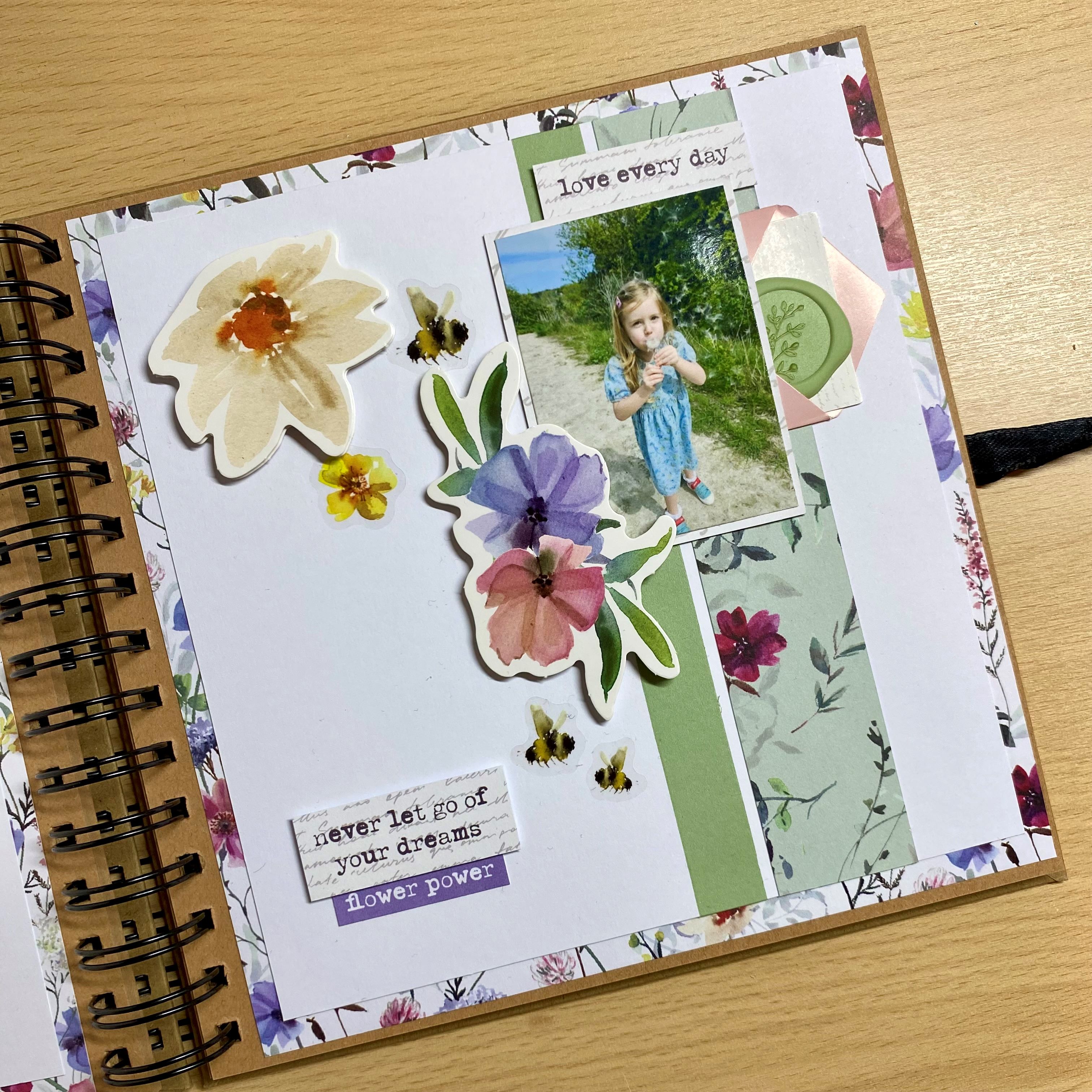 Capture your memories in full bloom with this wildflower double page spread scrapbook layout. Designed with a clean, simple aesthetic and bursting with wildflower charm, this project is ideal for anyone who loves crafting with pretty papers and floral embellishments.