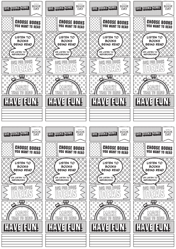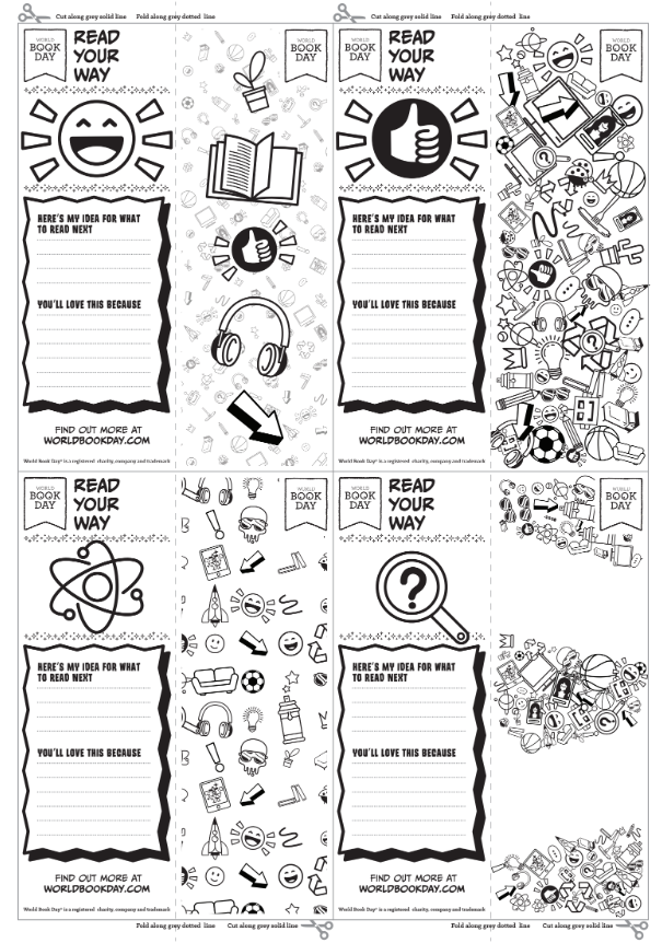 These black and white World Book Day bookmarks are ready to print and customise to your heart’s content! Get creative and colour them in to make your reading extra special.